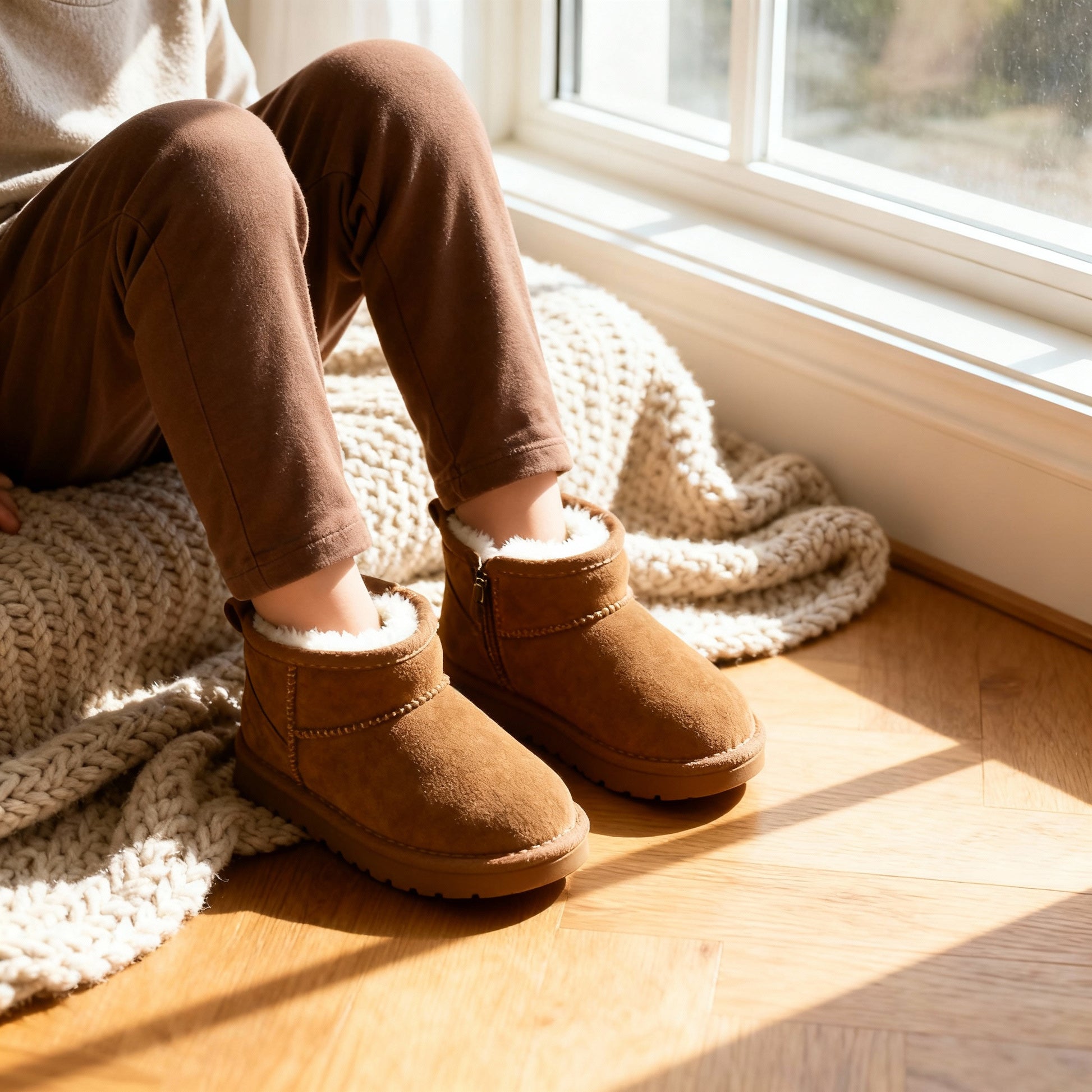 suede exterior with a soft faux-fur lining for warmth and comfort.